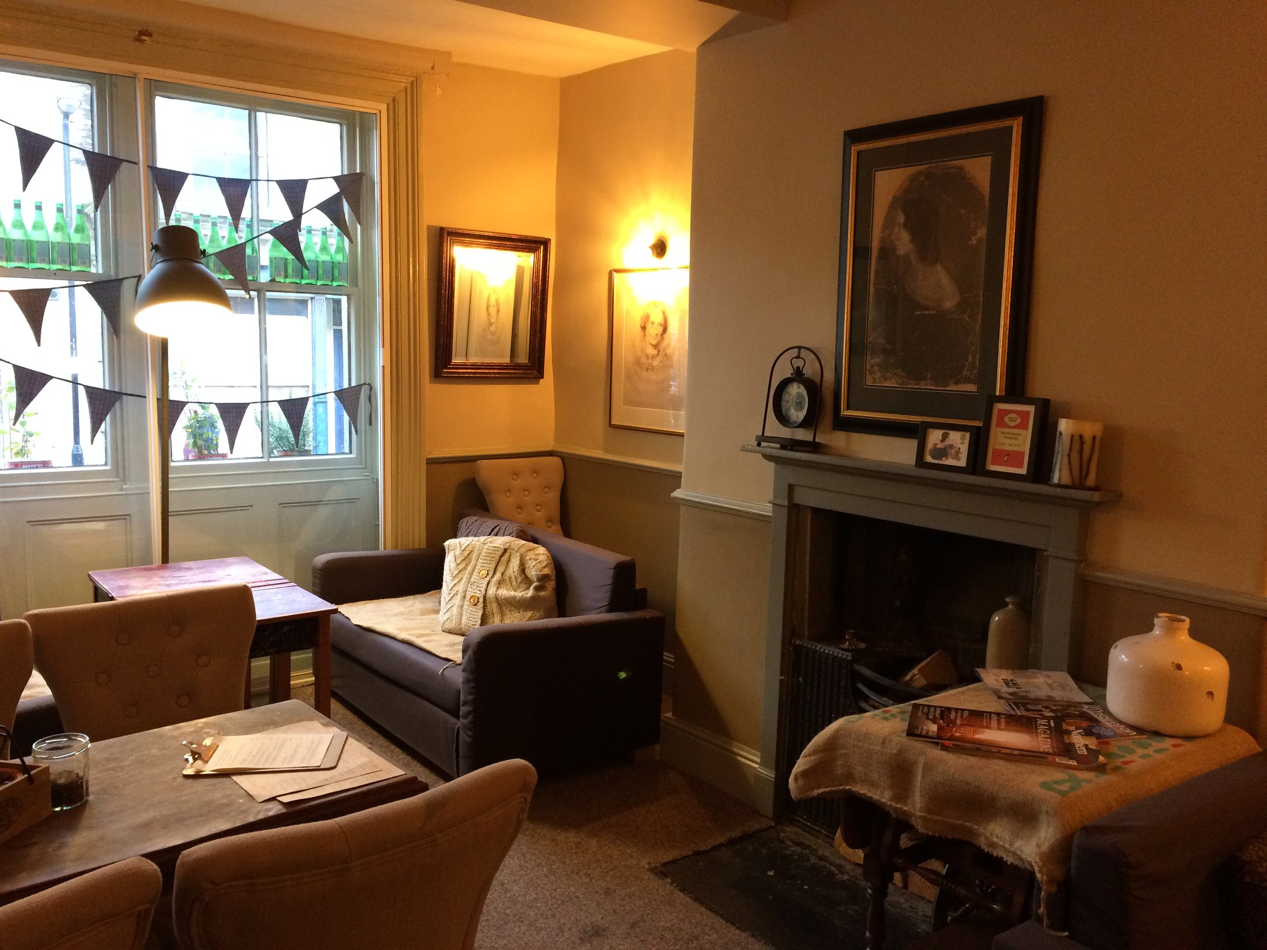When this was the parsonage provided by the parish for the Brontes, it had only three rooms on each of its two floors. The front of the house faced Market Street, a that time the main road through Thornton; the back would have been quieter with a yard backing onto the hillside. The Brontes two oldest daughters, Maria and Elizabeth, were born at Hartshead, their previous parish so it was their more famous siblings who, legend has it, were born by this very fire. And here, I sat, with a cup of tea and a delicious slice of cake, thinking about their lives and the incredible books they wrote.
