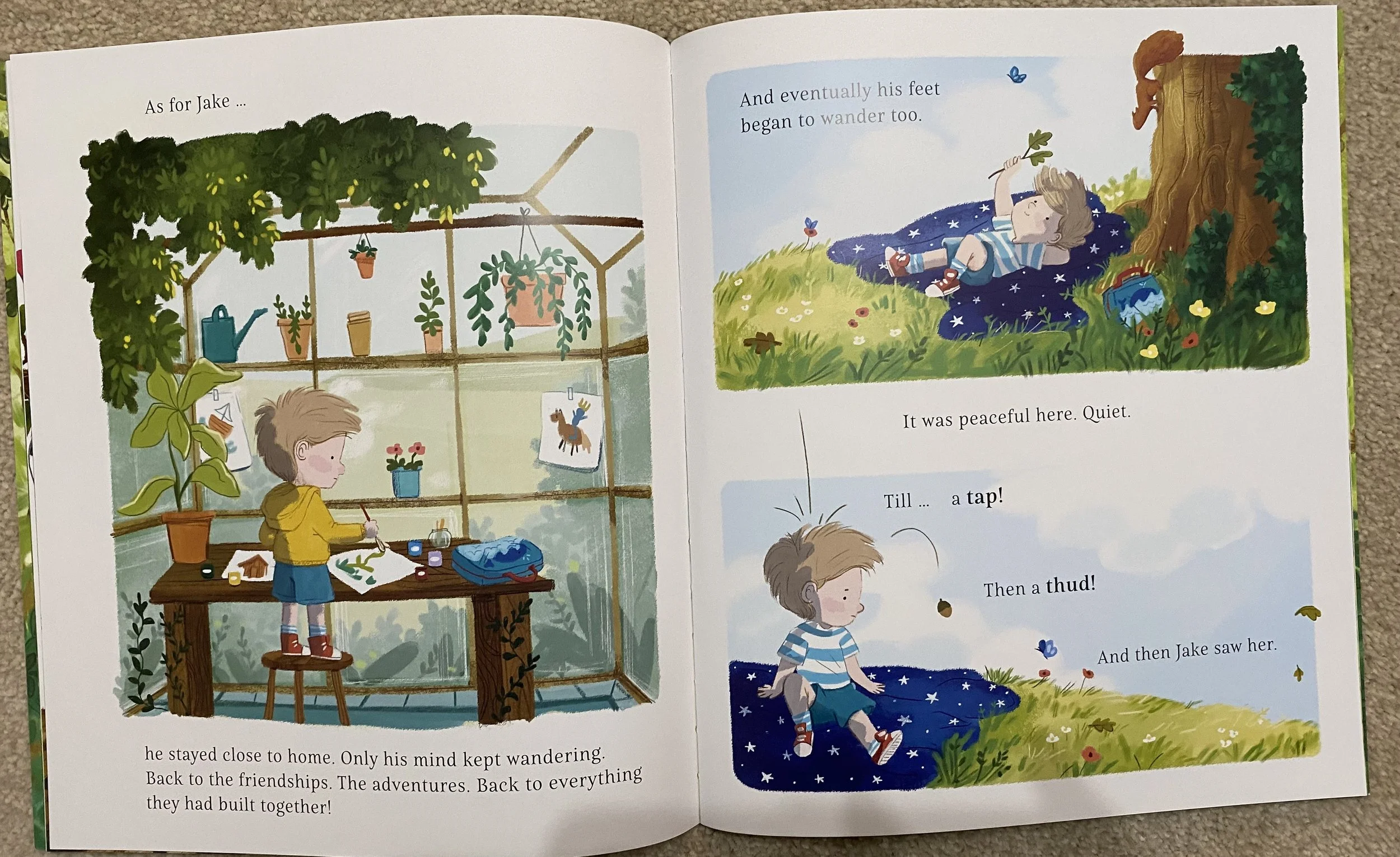 Vibrant, fun-filled illustrations reflect the joys of creative play with the tree central to their joy. Lily and Jake are surrounded by its greenery as they apologise for their unkind words and deeds. There are many details to notice and enjoy!