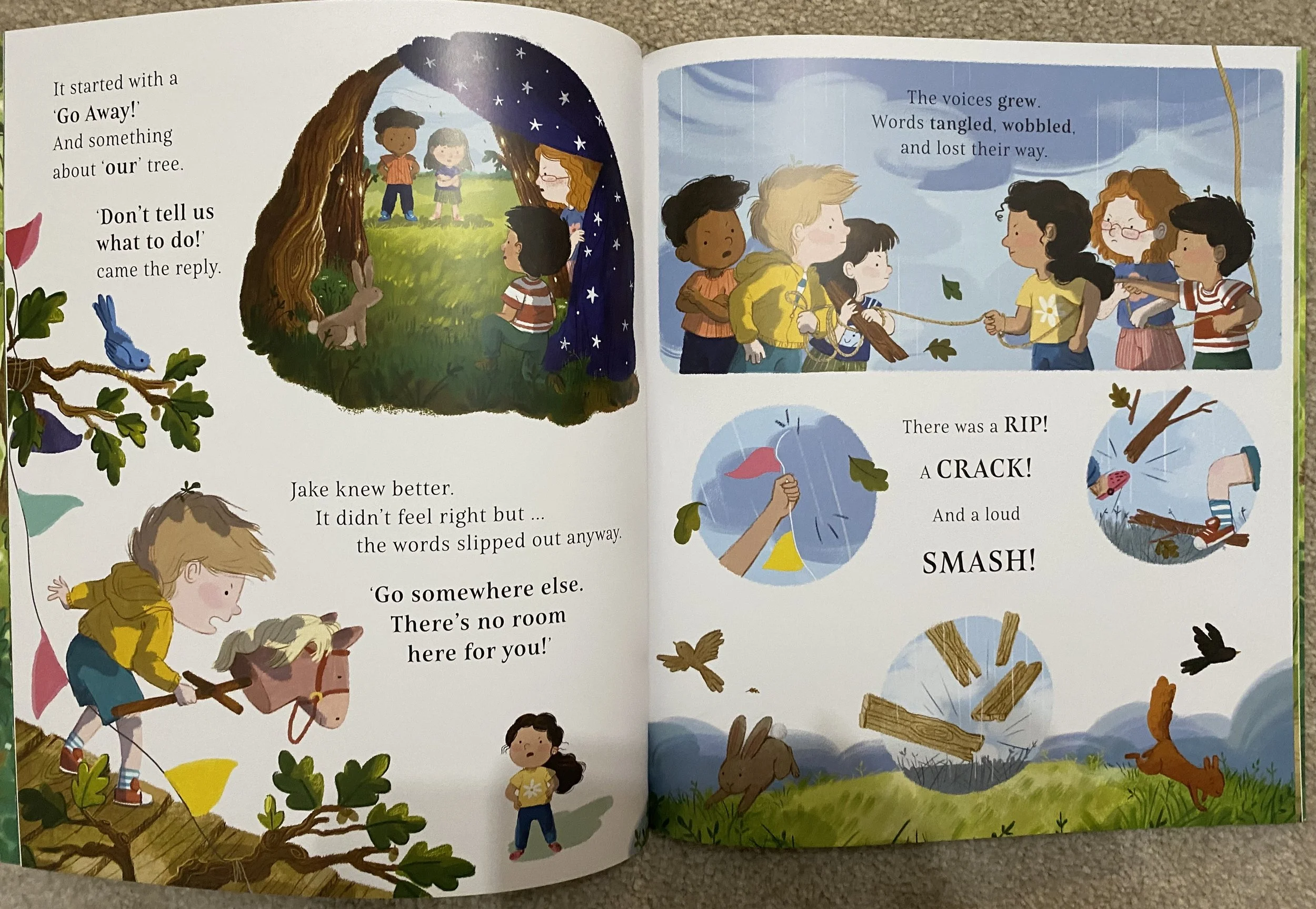 For Jake and his friends, the tree was a magical place where they built a tree house and played marvellous games. But when more children came, angry words and unkind actions destroyed everything …until they realise that they need to resolve their differences to move forward.