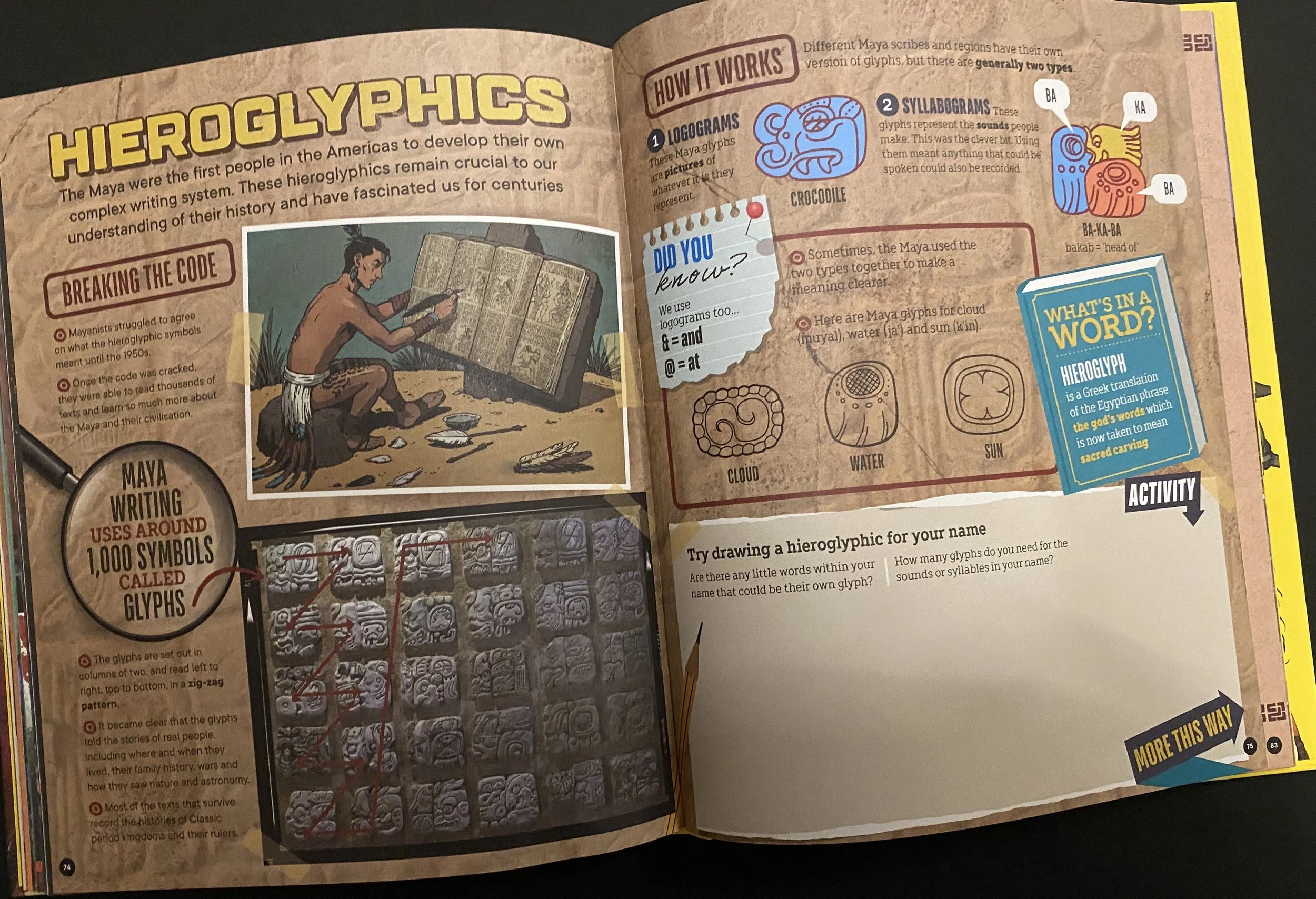 Plenty of information about daily life is included, with a focus spread on chocolate and its importance to the Maya. Divided into three sections, the book looks at the pre-classic, classic and post-classic periods, charting the rise and decline of this great civilisation, including investigating the theory that aliens were around at this time and how they might have helped the Maya build their pyramids!