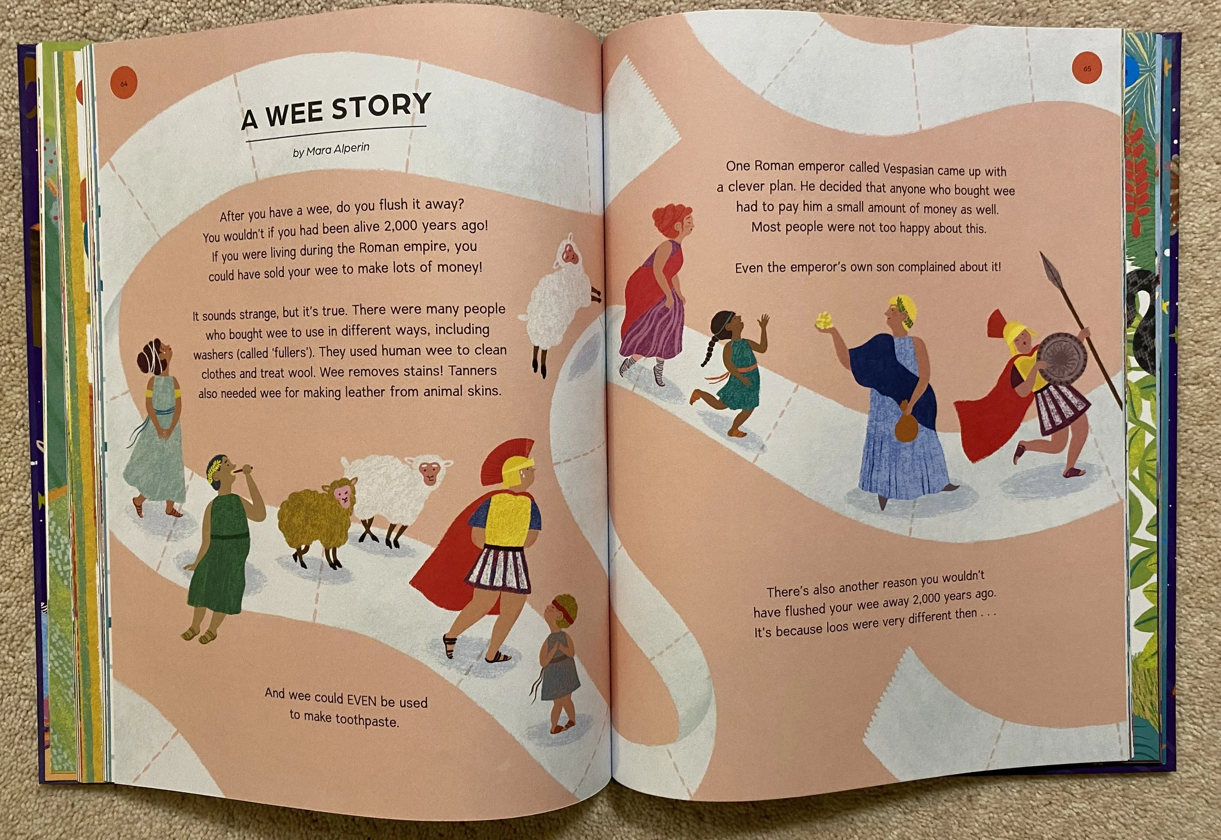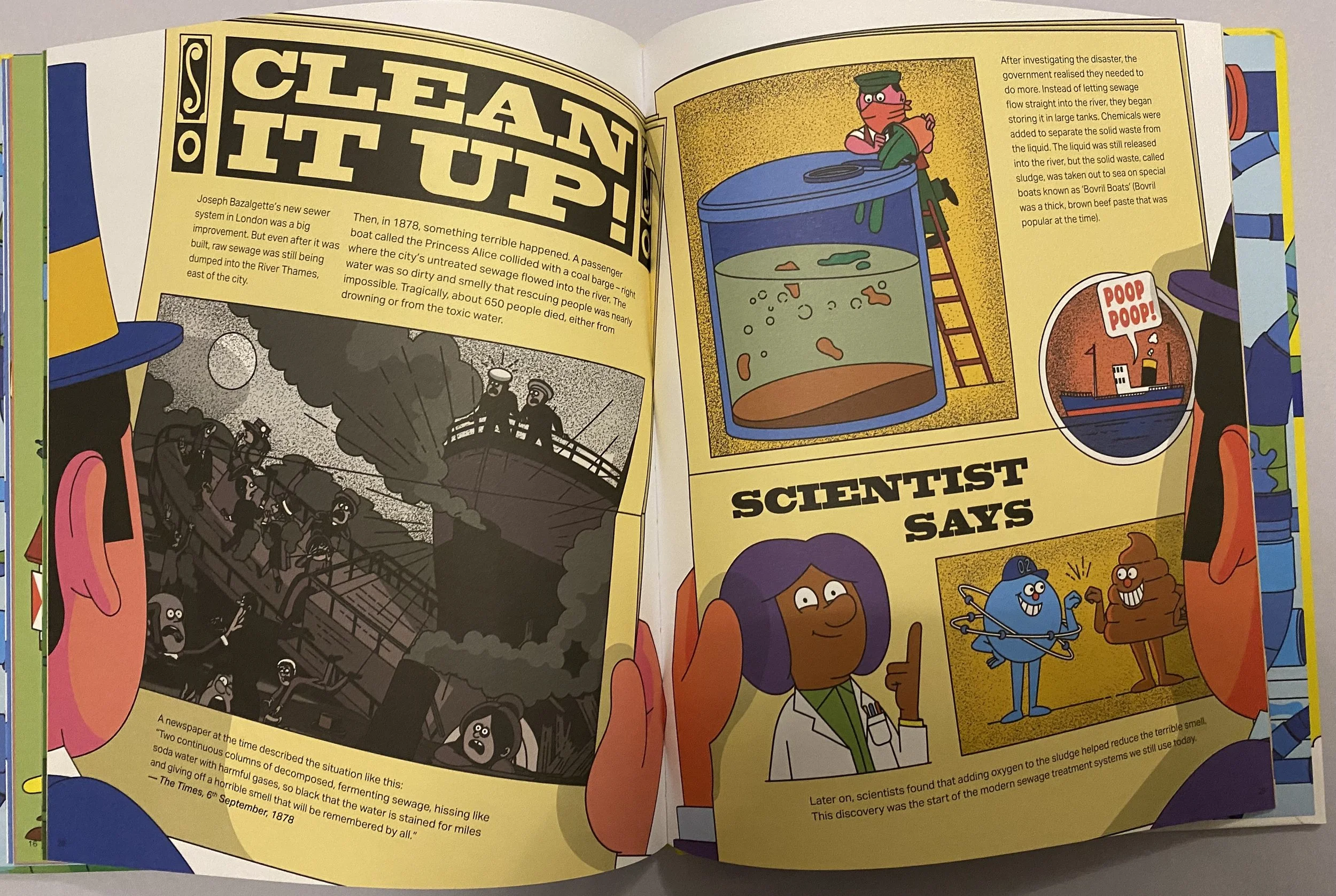 The book is packed with entertaining illustrations and plenty of word play and puns, adding much humour to the subject. However, more serious issues around the problems of human waste and dealing with these challenges today are also raised with a look at future, more sustainable solutions.