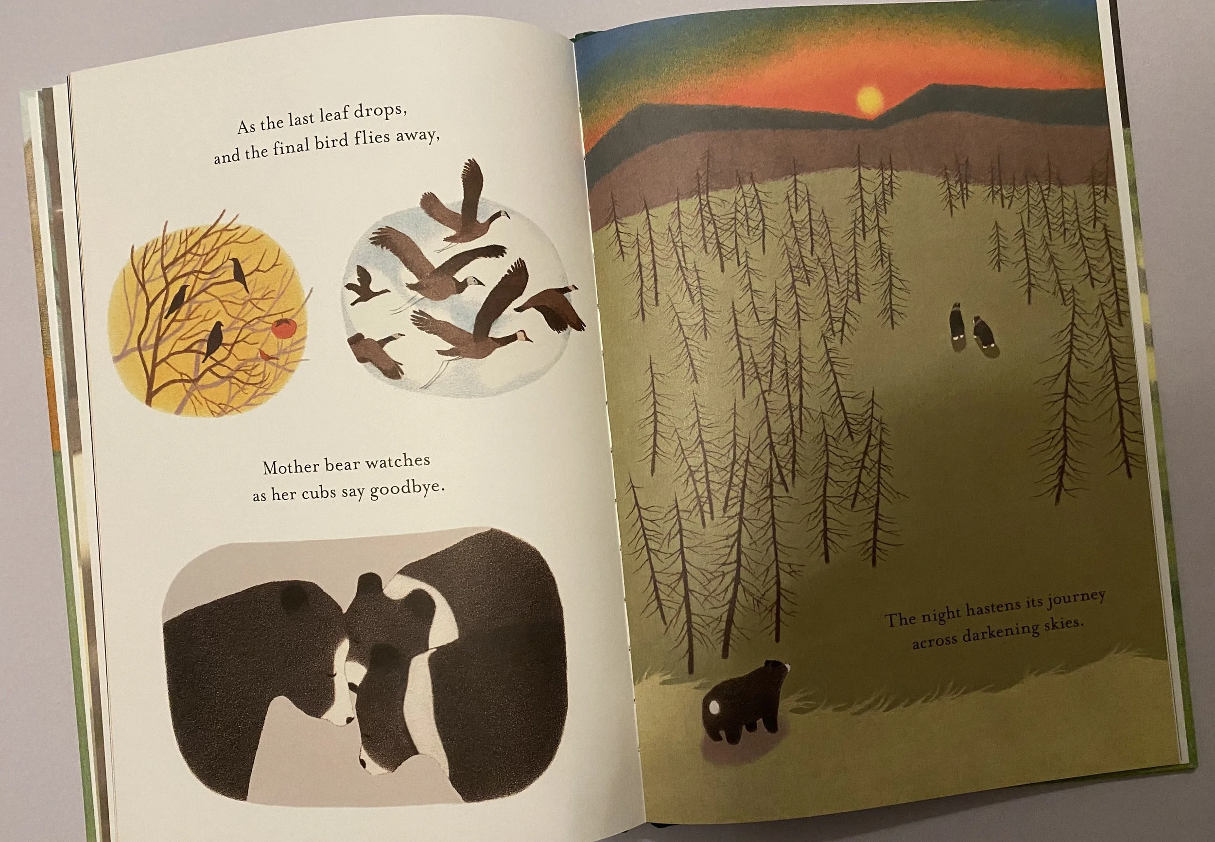 ‘A Song of the Seasons’ follows the lives of a mother bear and her cubs from as they wake from their winter hibernation through the changing seasons of the year. This gentle picture book captures the beauty of each phase of the year, celebrating the wonders of nature.