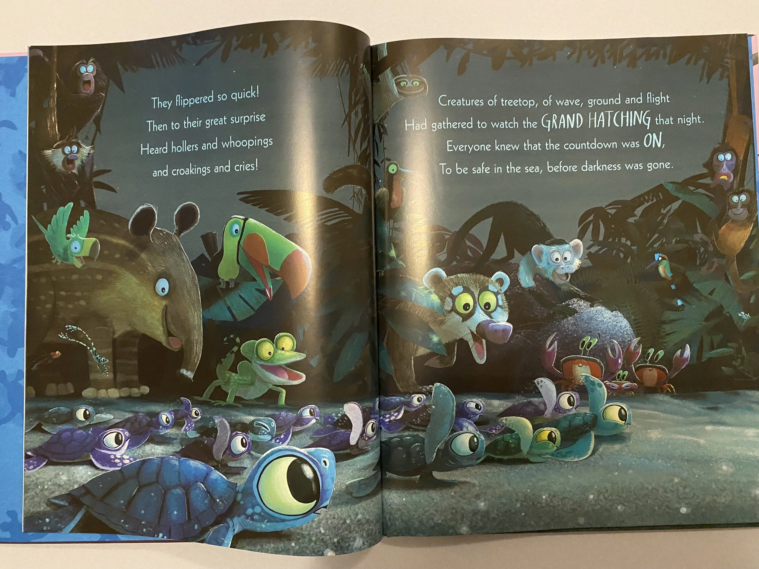 It’s the day of the Grand Hatching and all the animals have gathered to watch the baby turtles make their way to the ocean. Tula and her brother, Tiny, are amongst them and Tula finds herself the favourite to win the race to the water. However, she suddenly realises that Tiny has gone off course. She bravely decides to turn back and find him and when they find themselves facing danger, all the animals unite to save Tula and Tiny and see them safely to the water.