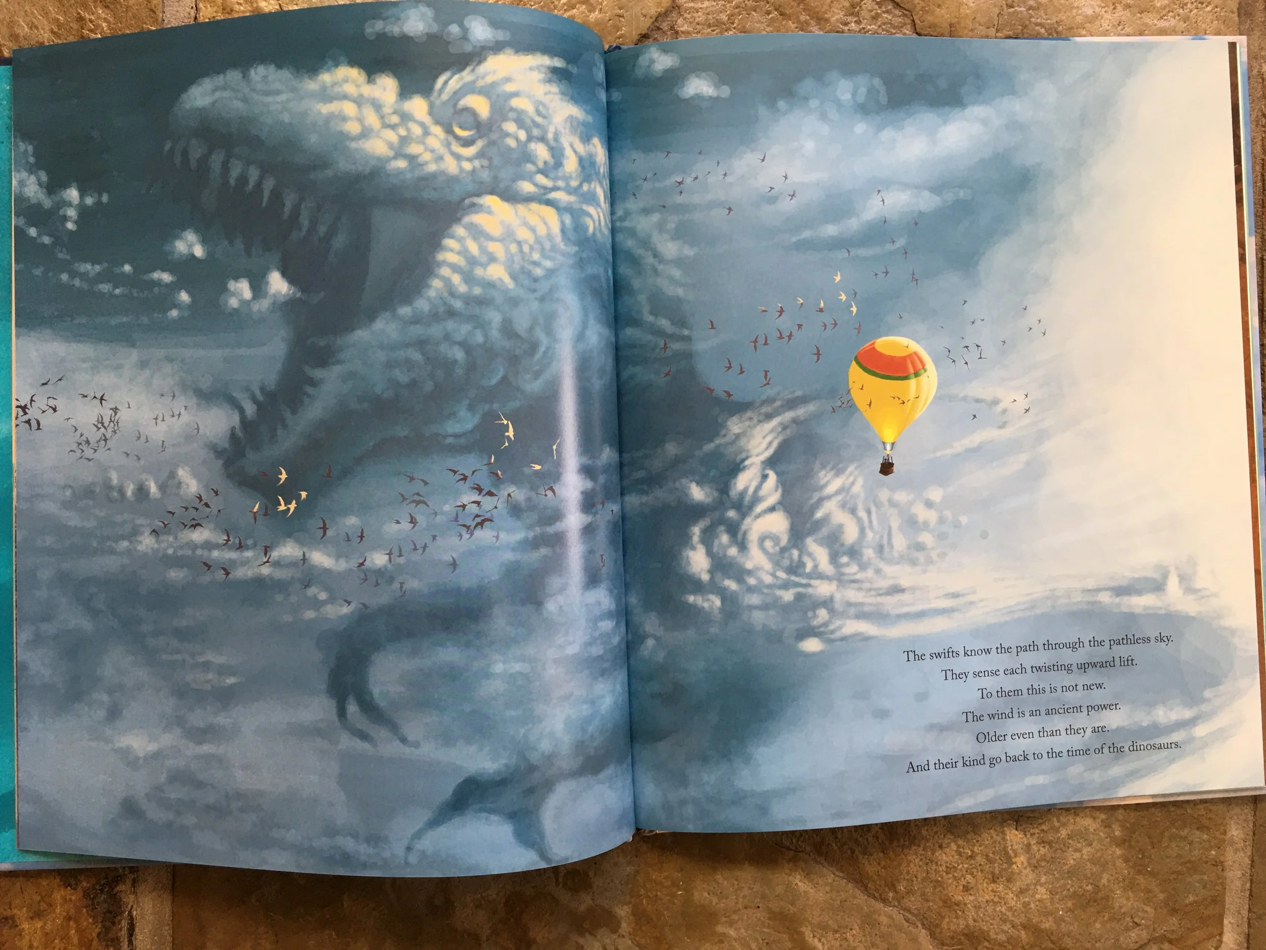 This is such a special book. ‘The Rhythm of the Rain’, a celebration of water and the essential part it plays on the planet, introduced the reader to Isaac and Cassi, connected by the journey Isaac’s jar of water made across the world. ‘Wild is the Wind’ opens with Cassi as her little swift is about to embark on its migration, the tiny bird connecting her to Kȗn in another land. The wind in all its guises plays a part at every stage of the flock’s epic flight- changing the face of the earth, carrying scents on the breeze, whipping white horses on the waves…Each spread is a masterpiece, full of detail, colour and life. There is so much here to inspire and enjoy, with many stories waiting to be told. This is a book to treasure and return to again and again whether alone or with others.