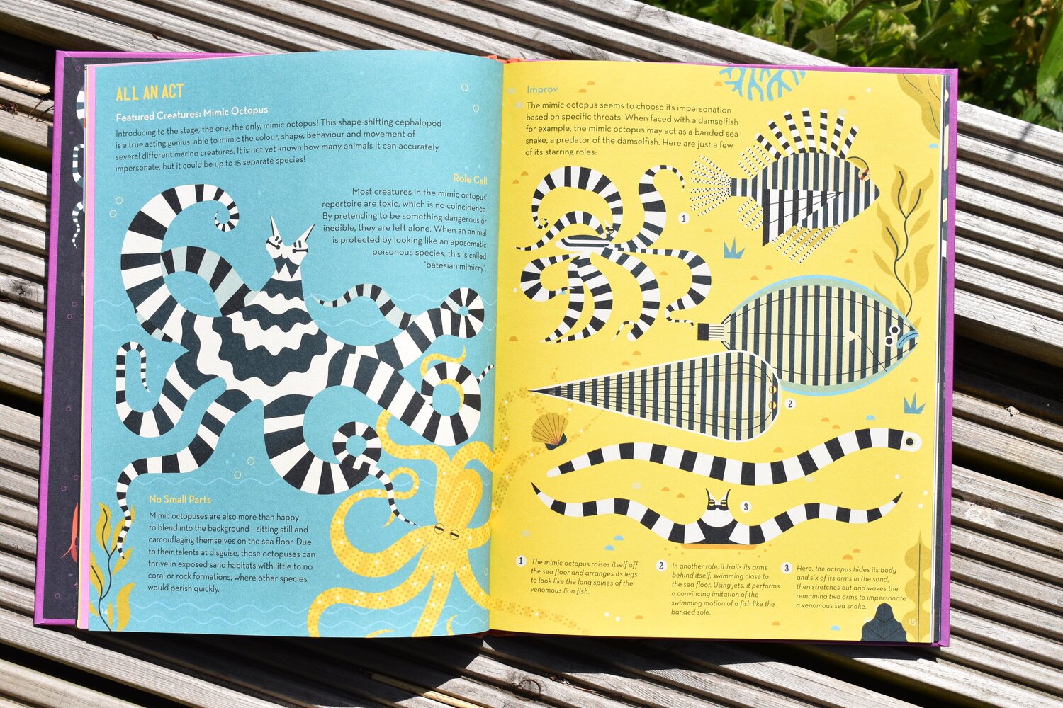 The text is packed with information, offering lots of details and facts. There are so many gems included here, all clearly explained, using scientific language where needed, making the book an absorbing read. The index gives the Latin names as well as the English, useful for Year 6 work on Linnaeus and his system of binomial nomenclature, as well as for locating information easily. The contents offers broader sections to entice the browser. My favourite section is the one on ‘Octopus Mythology’, which explores legends about these incredible creatures from different cultures.