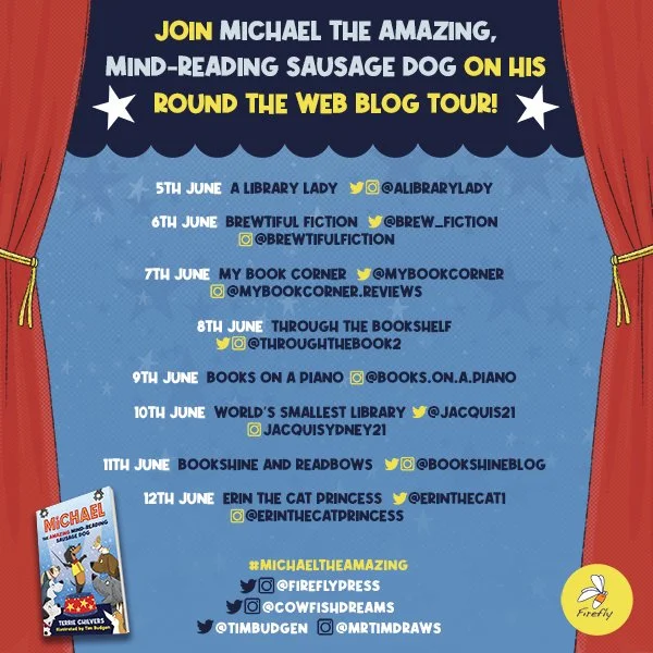 Many thanks to Terrie for joining me today. Make sure you read ‘Michael the Amazing, Mind-Reading Sausage Dog’- and enjoy the rest of the Blog Tour!