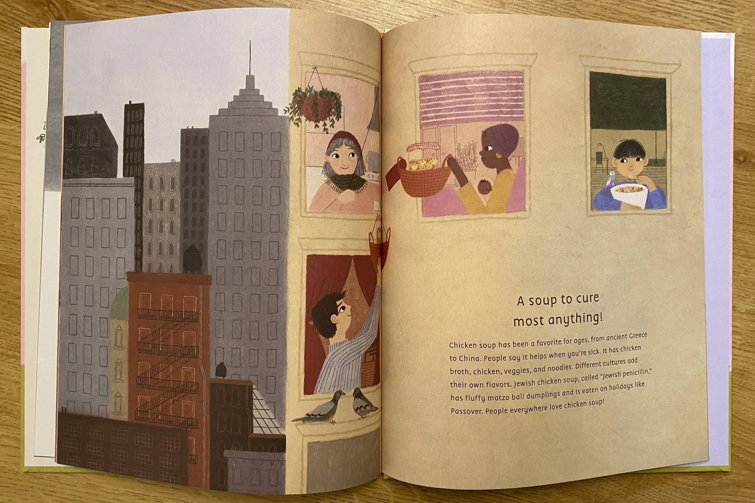 Simple rhyming text leads the reader from page to page whilst additional details are given about soups which are enjoyed in different countries and the traditions associated with them. Where appropriate, the name of the soup is given in the language of the country it is connected to along with details of its ingredients, how and when it is eaten. There is plenty here to spark interest and, hopefully, encourage some taste testing as well as inspiring children to appreciate the similarities and celebrate the differences surrounding something as simple as a bowl of soup.