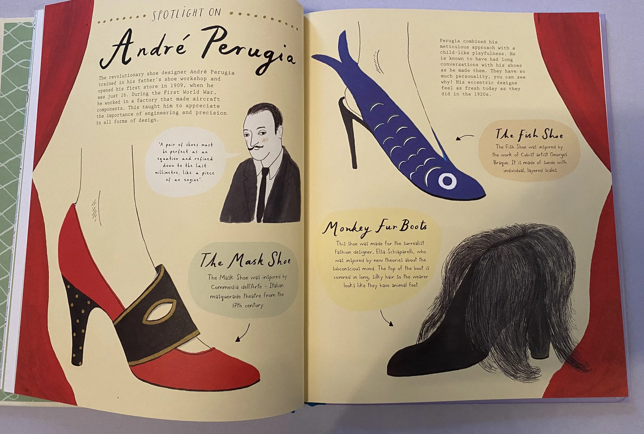 ‘Spotlights’ on significant designers and styles are scattered throughout, giving more detail about key figures such as Coco Chanel and Mary Quant and fashions like Desert Boots and Crocs. Adults are sure to enjoy this every bit as much as their children, perhaps laughing at foolish fashion choices of days gone by or longing for their return!
