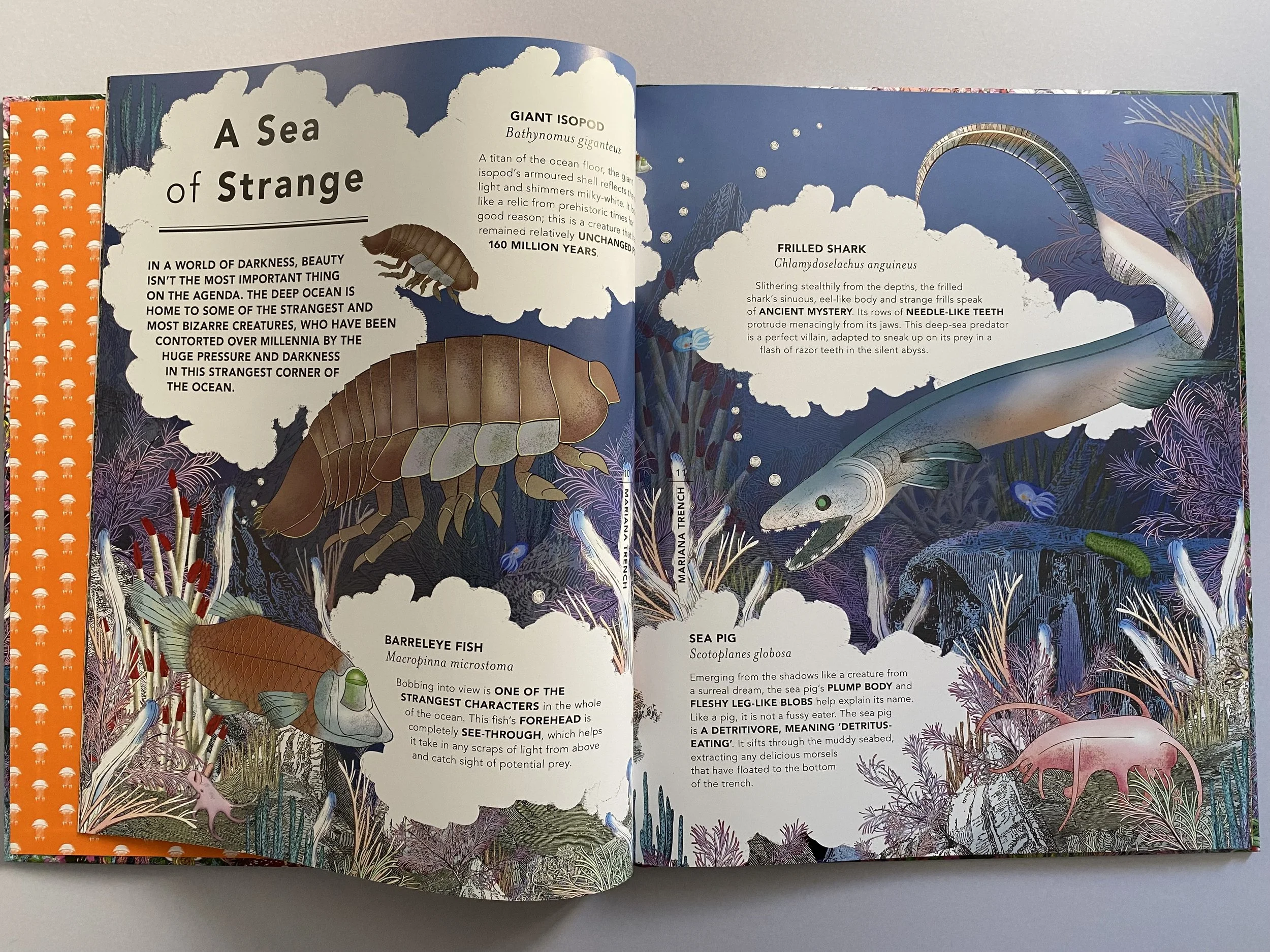 The book opens by suggesting that the Earth should, in fact, be called ‘the Sea’ as 70% of the planet’s surface is covered with water. With an explanation as to why this is mostly salt water, the author then explores water came to Earth, why we see the sea as blue and factors which affect this. Having set the scene in this way, cetaceans are then introduced and details about these fascinating creatures are shared through both text and illustration.
