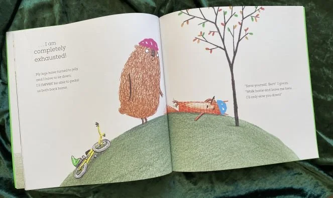 Frank and his best friend, Bert, like to go on bike rides, but they have a big problem- Bert is not very good at riding a bike. However, he decides he will be just fine so even tho Frank is not so sure, they set off on their ride. Predictably, things do not go well, but with teamwork, perseverance, patience and friendship all’s well in the end!