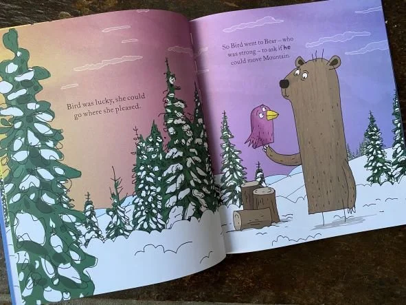 The illustrations are lovely, full of life and colour. Mountain, for all his size, has such a gentle face, expressing so much character!