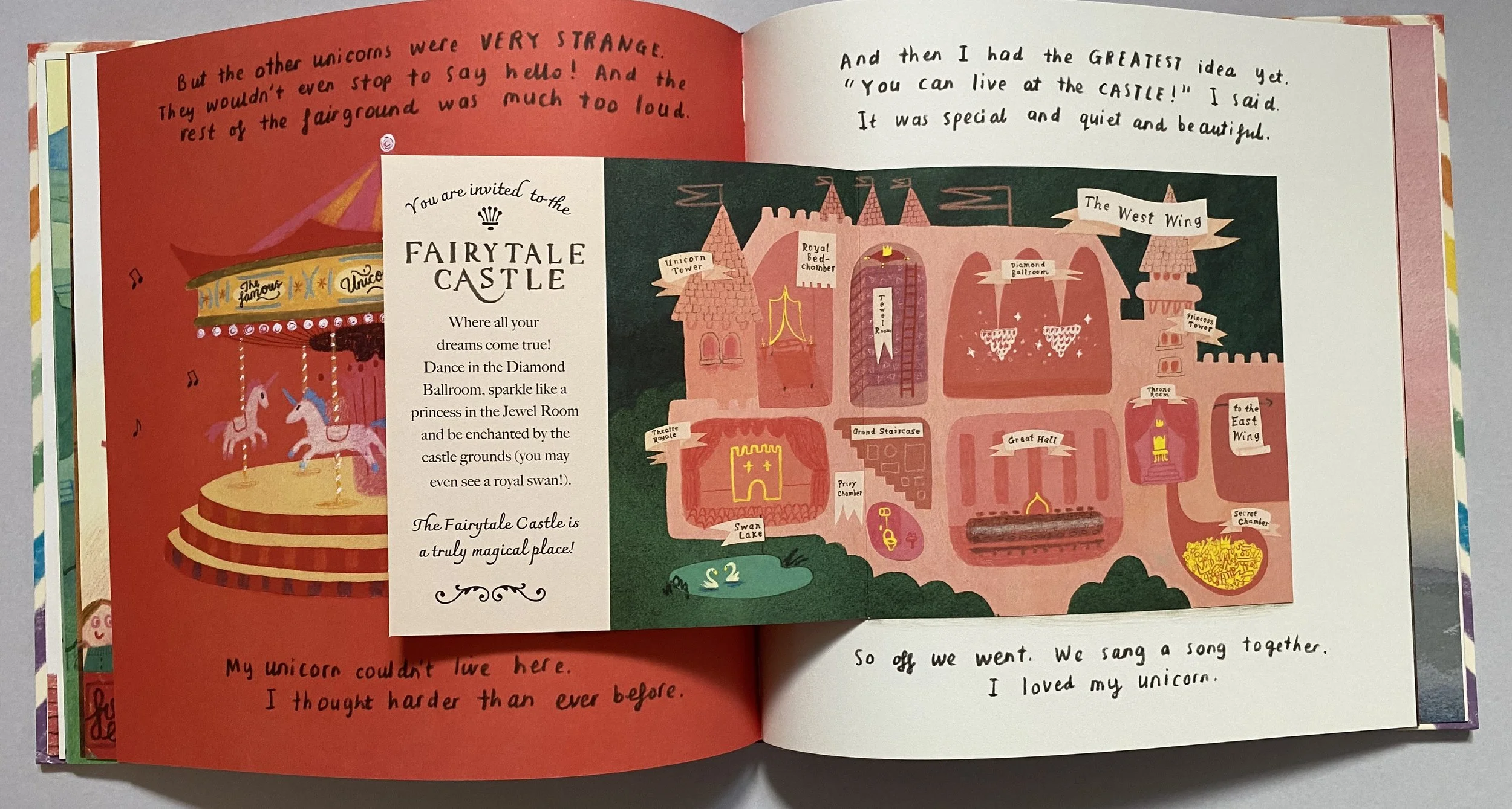 One day, when a little girl is playing in her tree house, a unicorn arrives. Keen to help her new friend, the little girl takes the unicorn to visit places around the town which might make a suitable new home. From the pet shop to the fair, together they explore until, at last, the unicorn finds its perfect forever home.